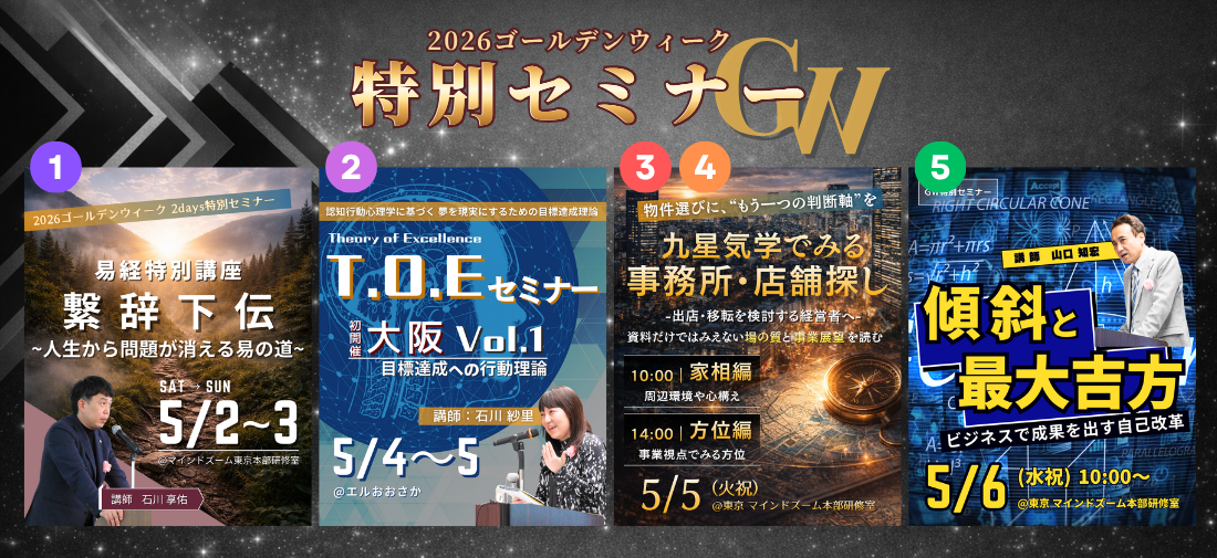 マインドズームでは、個人の精神の発展や社会の開発を目的として、社会運勢学に基づく各種の自己啓発セミナーを開催しています。